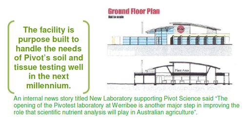 An internal news story titled New Laboratory supporting Pivot Science said “The opening of the Pivotest laboratory at Werribee is another major step in improving the role that scientific nutrient analysis will play in Australian agriculture”.